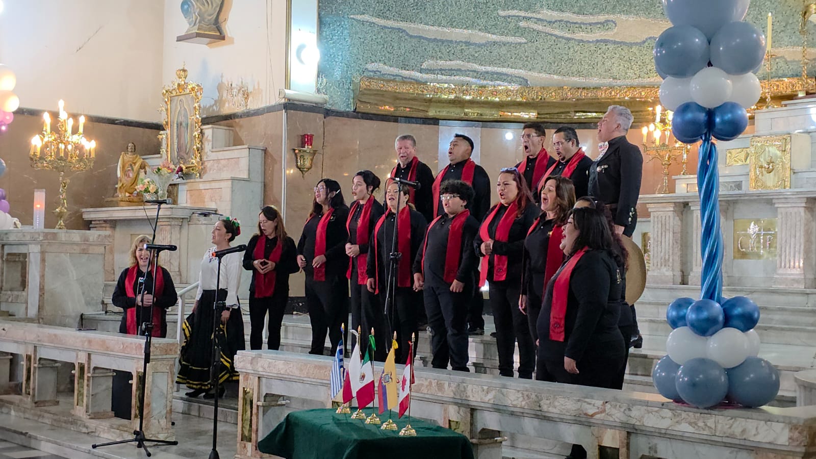 El coro Elohim Getsemaní fue el que representó a este templo de San Antonio María Claret y, siendo ellos los anfitriones, entonaron bonitos cantos, a través de los cuales dieron muestra de la riqueza y alegría de nuestra cultura mexicana.