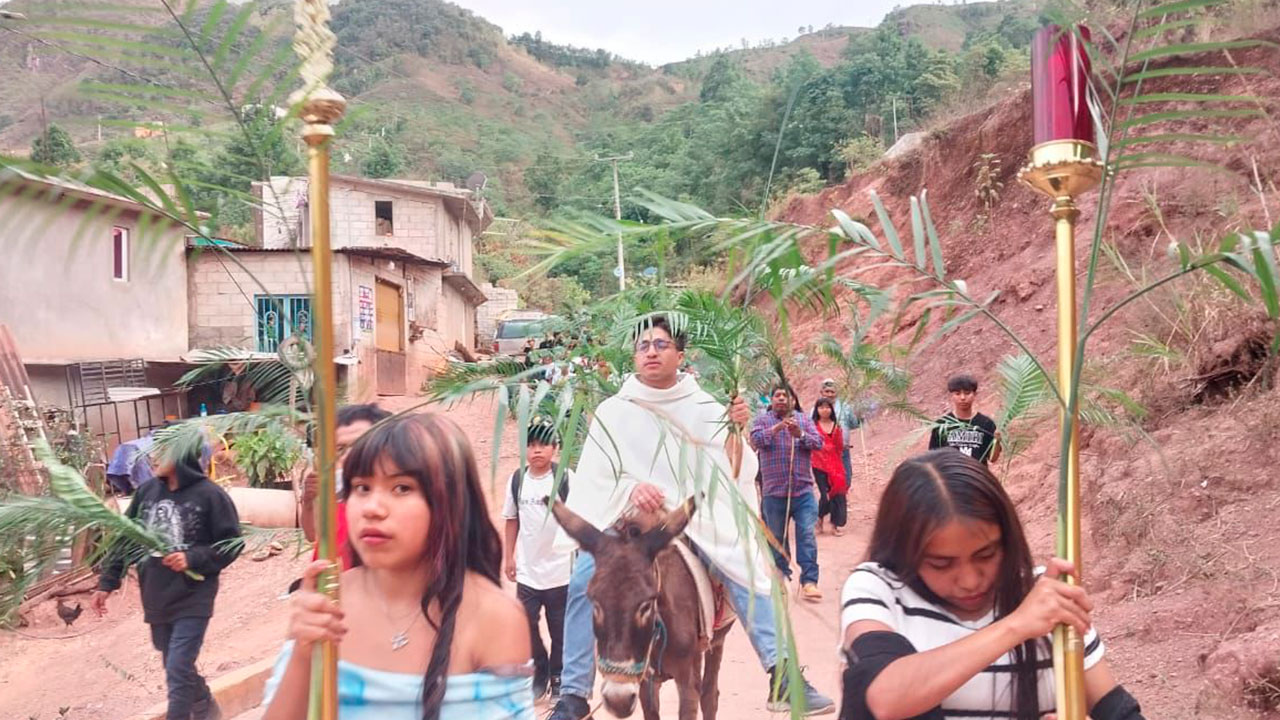 Junto con la comunidad organizamos el programa de Semana Santa, desde el Domingo de Ramos hasta la Vigilia Pascual. Fue muy enriquecedor ver cómo ellos mismos aportaban ideas y participaban activamente en la planificación. El Domingo de Ramos iniciamos con una procesión a las cinco de la tarde, partiendo de la capilla de San José hacia la capilla de Santiago, donde celebramos la Palabra. Desde ese día pude contemplar una comunidad unida, participativa, en la que niños, jóvenes, adultos y ancianos se integraban con entusiasmo.